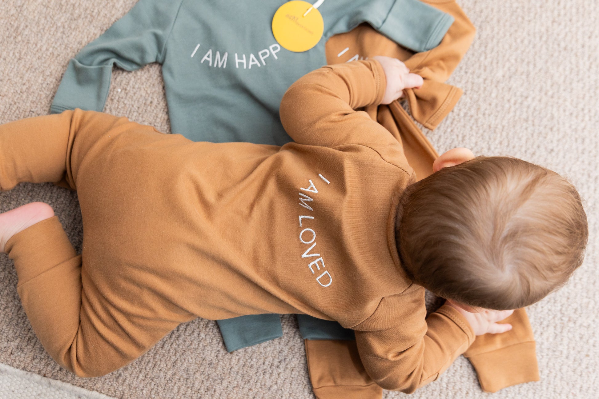 100% Organic Cotton Baby onesie with I AM LOVED Affirmation Embroidery